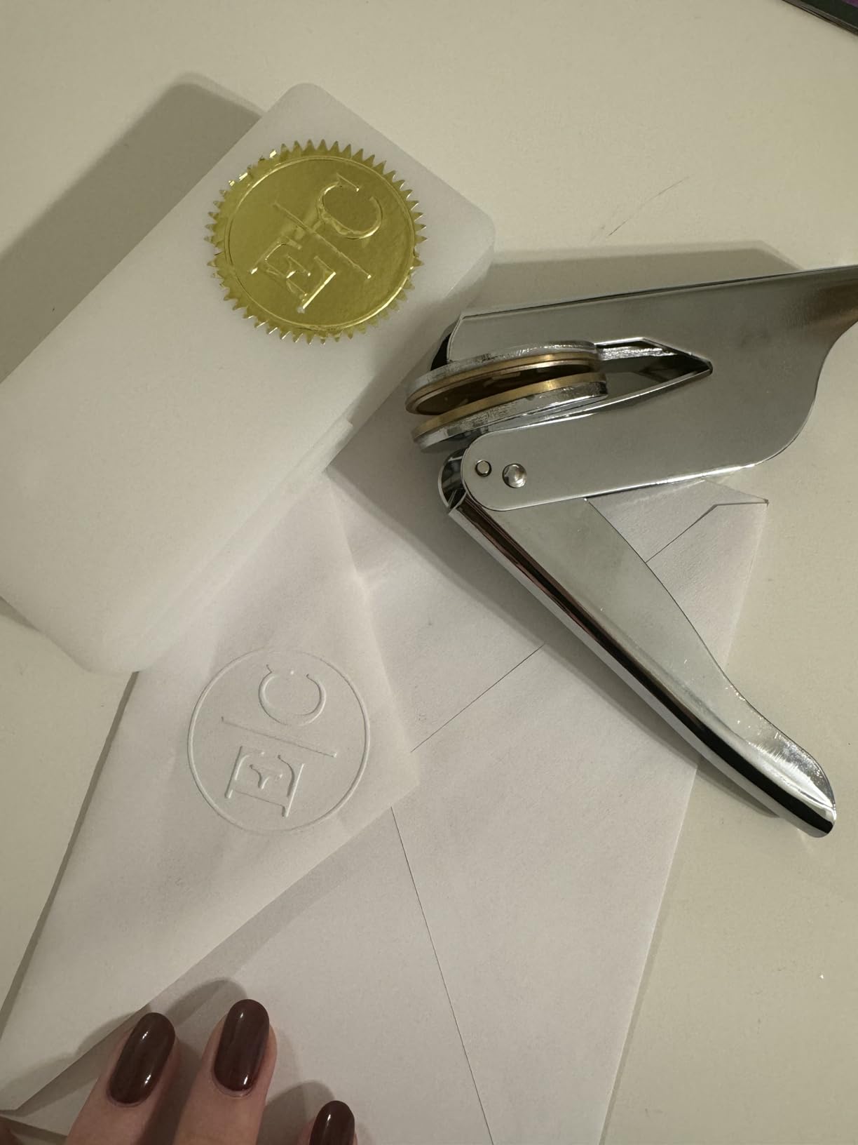 Create a professional, custom seal for documents, books, weddings, and branding with our customizable logo embosser stamp.